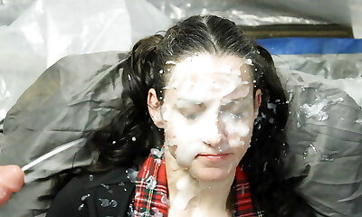 Latina Teen with puny tits and dark hair gets a facial cumshot