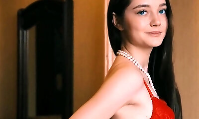Super Hot housewife Lukerya has fun flirting with fans online, showing off the beauty of her middle-aged but sexy figure in red.