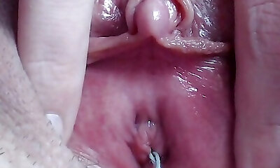 Extreme closeup masturbation with huge clitoris wet ejaculation