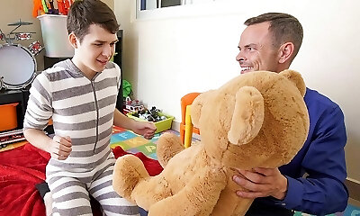 Twink Stepson And Stepdad Family Threesome With Stuffed Otter
