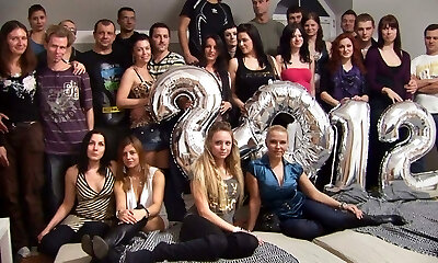 Three guys and trio girls are doing it in the living apartment - AviDolz