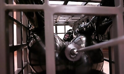 Caged lesbians licking snatch