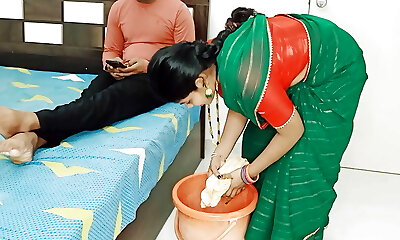 XXX Sumptuous Indian aunty shared his spouse with maid!! Desi latest 2024 hot threesome sex