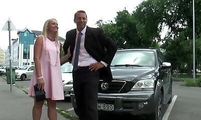 Playful lengthy haired blond maid salutes tongue fuck from her sexy landlord