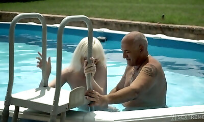 Irresistible sexual desire between young platinum-blonde and her old step daddy